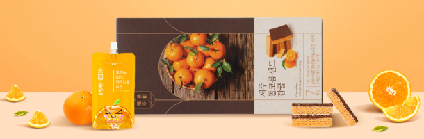 제주돌코롬 감귤샌드(7개입) 혹은 제주돌코롬우도땅콩샌드(7개입) 1개 랜덤 제공, 제주유기농감귤주스 150ml 1개제공